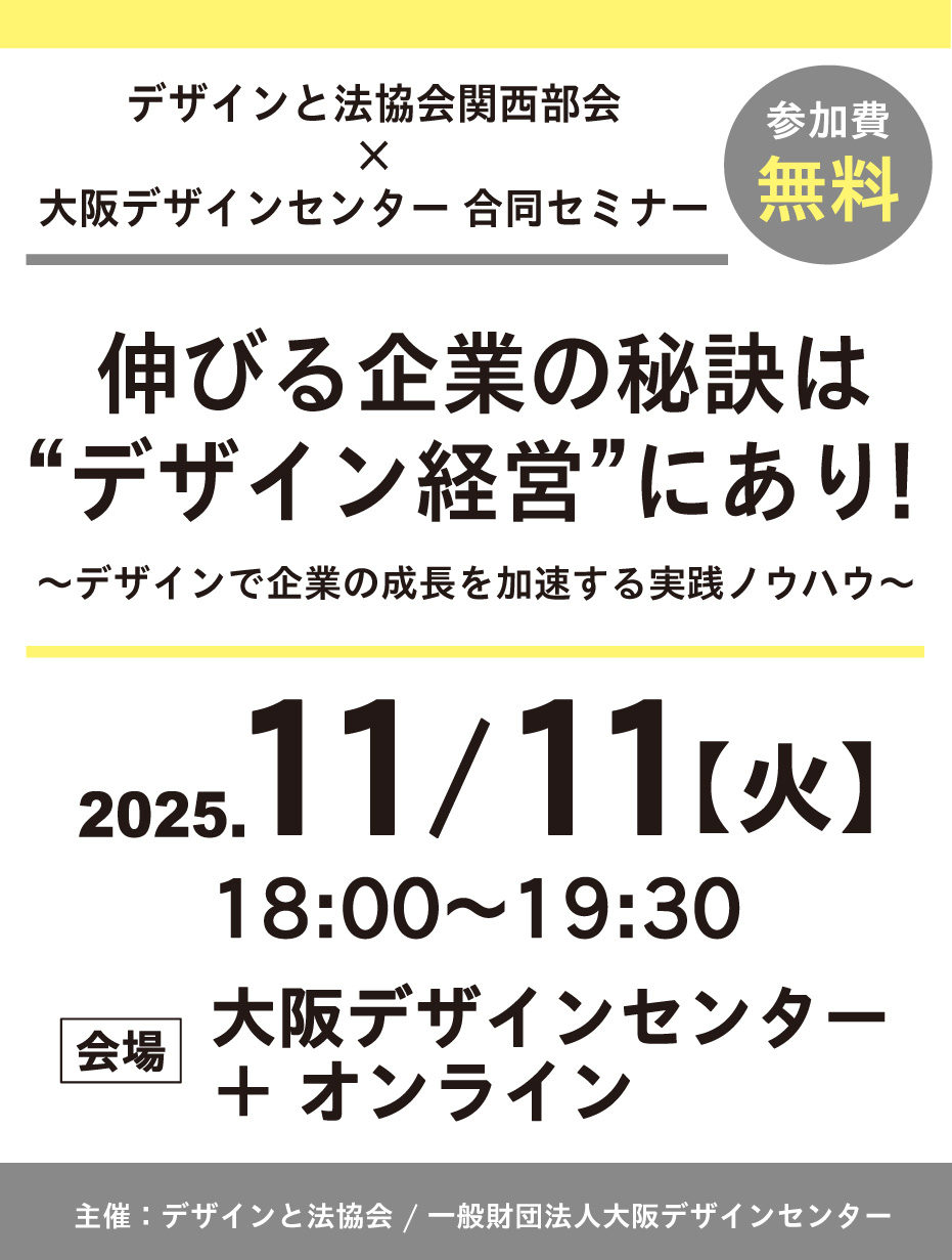 または割引に大阪デザインセンターが主催するセミナーやイベント、研修会を会員価格で受けられます。