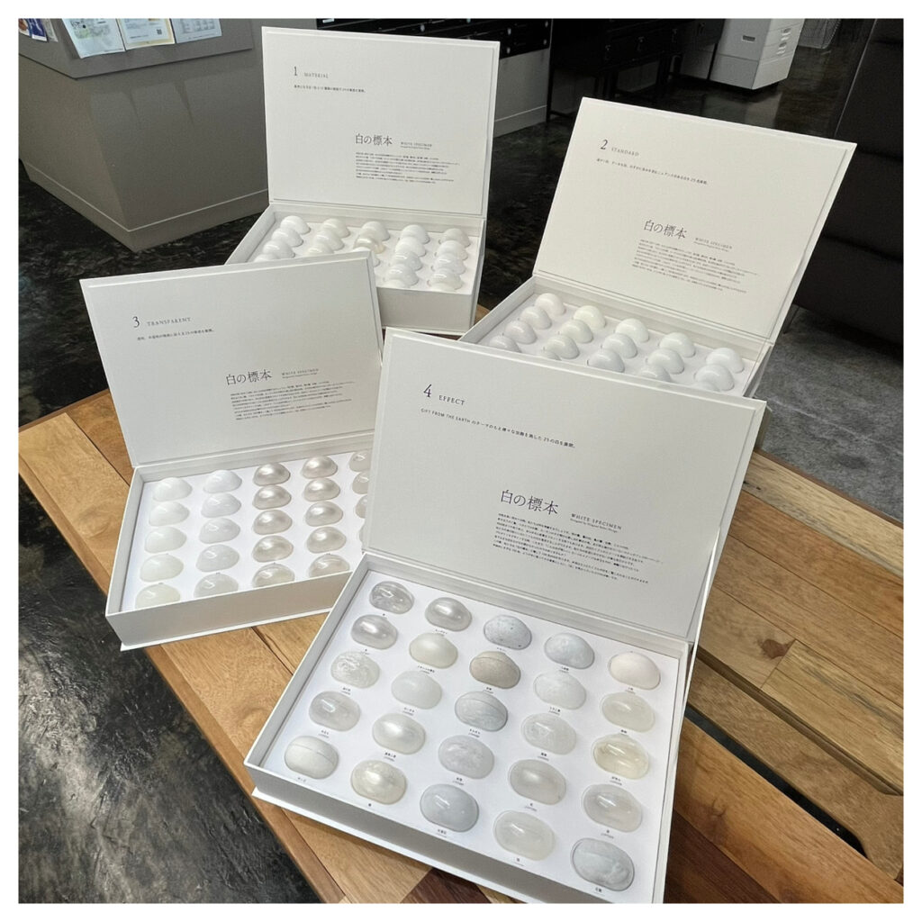 「白」に特化した樹脂素材のCMF見本「白の標本」。