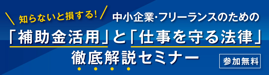 【3.3】知らないと損する!中小企業・フリーランスのための「補助金活用」と「仕事を守る法律」徹底解説セミナー